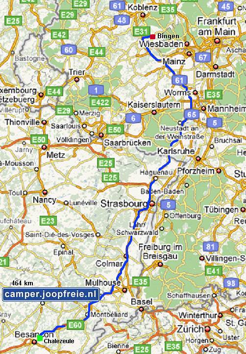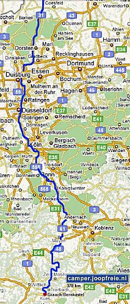Straatsburg en Karlsruhe. Daarna gaat het via de 65 en de 61 naar het noorden, richting Koblenz. Nog een eind voor Koblenz