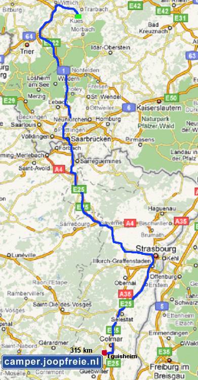 We verlaten Graach om 9.15 uur en rijden via de snelweg naar Saarbrücken en van daar naar Colmar. Tegen 3 uur hebben we de