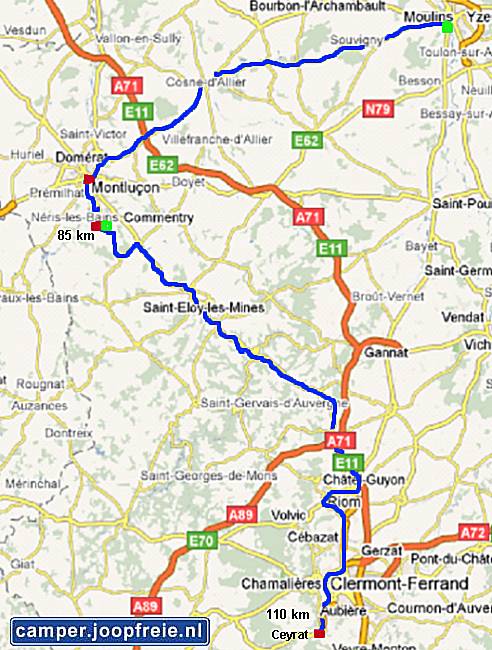 vandaar weer naar boven (Le-puy-en-Velay, Ambert, Vichy) naar Dompierre-sur-Besbre.