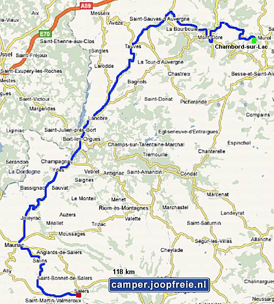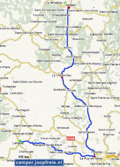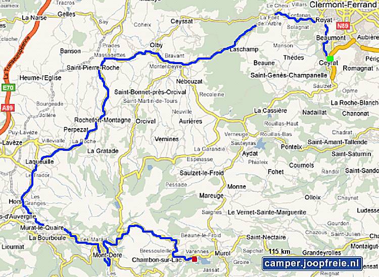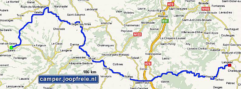gereden (Montlucon, La Bourboule, Bort-les-Orgues) en vandaar via het zuiden (Salers, Murat, Langeac) naar de oostkant. En
